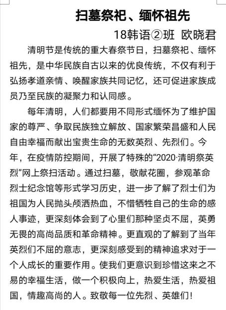 清明节是我国人民悼念逝者、寄托哀思、缅怀先人的传统节日。根据《广东省新冠肺炎防控指挥办疫情防控组关于印发广东省清明祭扫期间新冠肺炎疫情防控工作指引的通知》等相关文件精神,按照马克思主义学院直属党支部疫情防控期间组织生活安排,马克思主义学院概论党小组于清明节组织学生开展了网上祭扫活动。