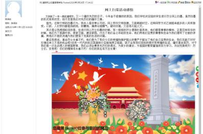 报答春光知有处,工贸学子效英才。本次网上祭扫活动,概论党小组全员组织,全过程引导,数千学生参加,大家纷纷感慨:悠悠清明日,致敬正当时,这是一场爱国主义教育的大课,既有仪式感也有时代感,是一次走心的活动,表示要在以后的生活学习中不断践行先烈精神,壮我中华,奉献智慧。这次特殊时期的清明网上祭扫活动取得了完满成功。