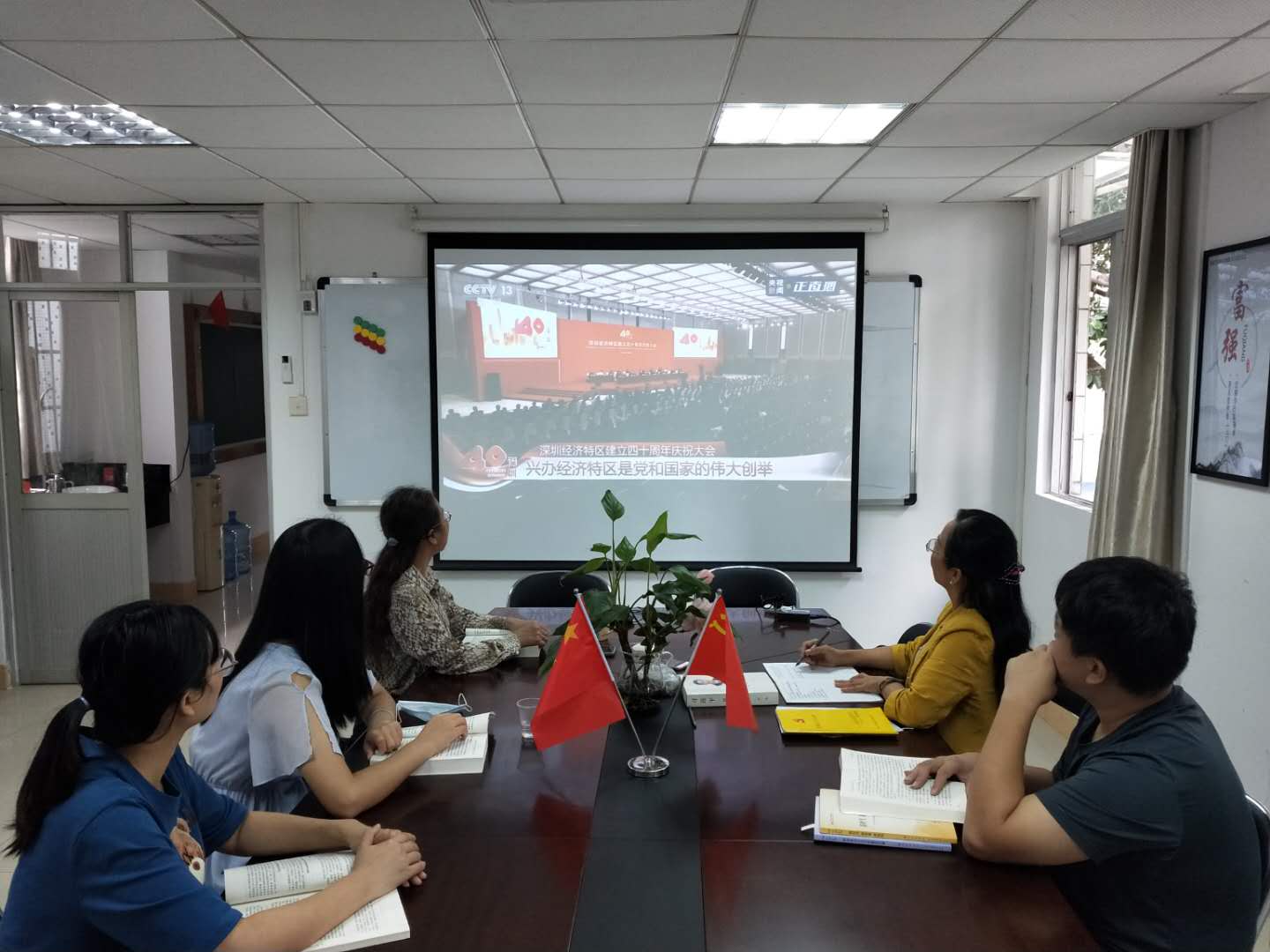 四十载波澜壮阔,新征程催人奋进。通过收看直播、聆听习近平总书记重要讲话,大家对深圳经济特区40年取得的辉煌成就感到振奋,对改革创新精神有了更加深刻的认识,对经济特区再出发的光明前景充满信心。习近平总书记在讲话中强调,新时代经济特区建设要高举中国特色社会主义伟大旗帜,大家纷纷表示,作为一名高校思政课教师,要担当起时代的使命,为社会主义伟大事业培养一代又一代的建设者和接班人,为实现“两个一百年”奋斗目标,实现“中国梦”作出新的更大贡献!