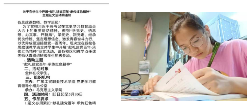 为贯彻落实习近平总书记在党史学习教育动员大会上的重要讲话精神,鼓励广大师生做到学党史、跟党走,继承党的优良传统,坚定理想信念,以优异成绩迎接建党一百周年,根据新葡的京官网马克思主义学院在学生中开展“献礼建党百年 承传红色精神”主题征文活动的通知精神,马院教师积极组织班级学生踊跃参加。