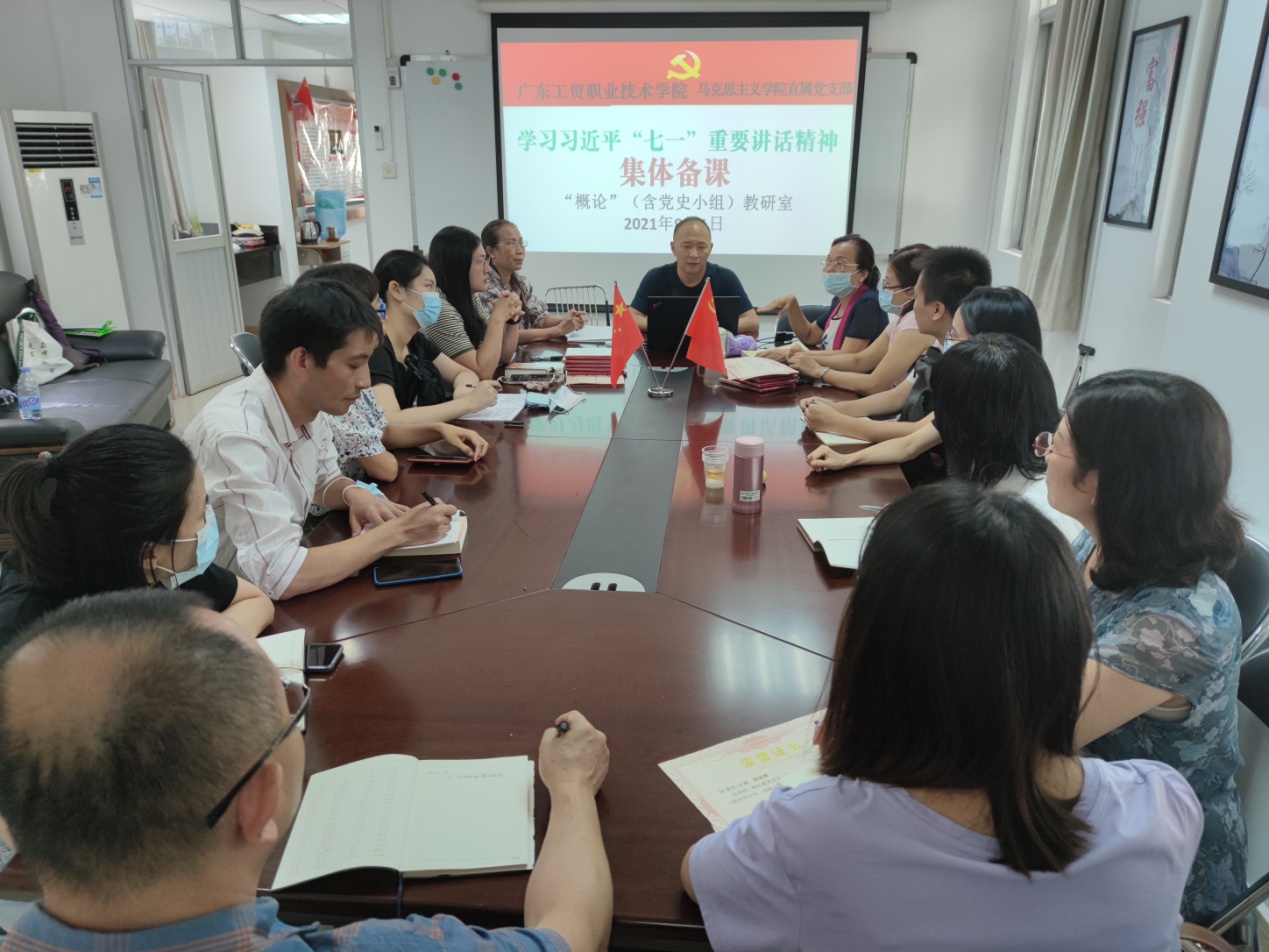 新学期伊始,为认真学习贯彻落实习近平总书记在庆祝中国共产党成立100周年大会上的重要讲话精神,推动讲话精神融入思政课教学,9月1日上午,马克思主义学院直属党支部在开展第四次党史学习教育之后进行了集体备课活动。马院全体教师及直属党支部书记、常务副院长李瑞清,组织委员、副院长丁妙珍都参加了备课活动,荔湾校区的教师们首次参加校本部的集体备课,还有部分兼课老师也积极参加。这是学校集团办学以来马院规模最大的集体备课活动。