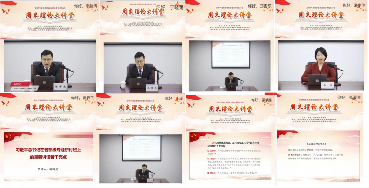 1月11日习近平总书记在中央党校省部级专题研讨班上的重要讲话,对用好思政课这个渠道提出了明确要求。为帮助思政课教师更好学懂弄通做实这篇重要讲话精神,社科司于1月21日下午2:30,通过“周末理论大讲堂”组织专题学习。按照学校党委部署安排,马克思主义学院迅速发布通知,组织思政课教师在全国高校思想政治理论课教师网络集体备课平台上收看“周末理论大讲堂”的专题教学直播。