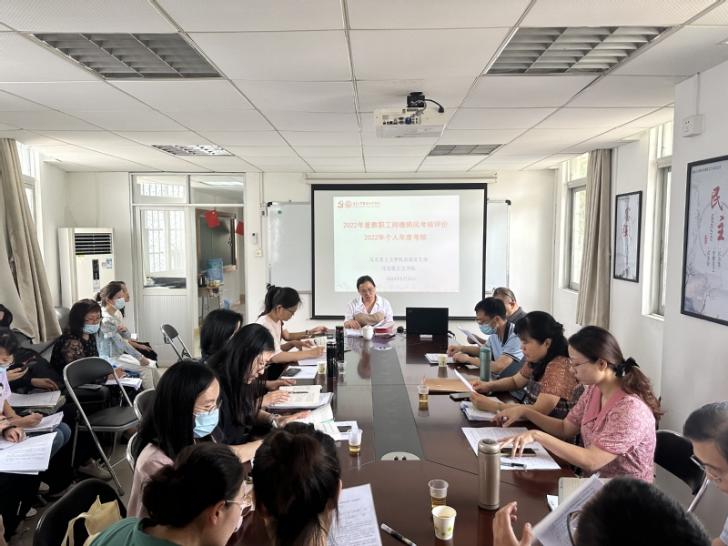 2023年5月25日下午,马克思主义学院召开2022年度教职工师德师风考核评价和个人年度考核大会。会议由马院临时负责人宁晓菊主持。