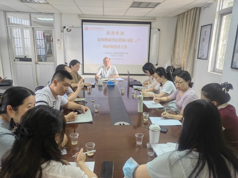 9月27日上午,学校党委副书记、纪委书记夏韩辉同志莅临马克思主义学院调研和指导工作。马克思主义学院临时负责人宁晓菊和当天无课的思政课教师参加了会议。