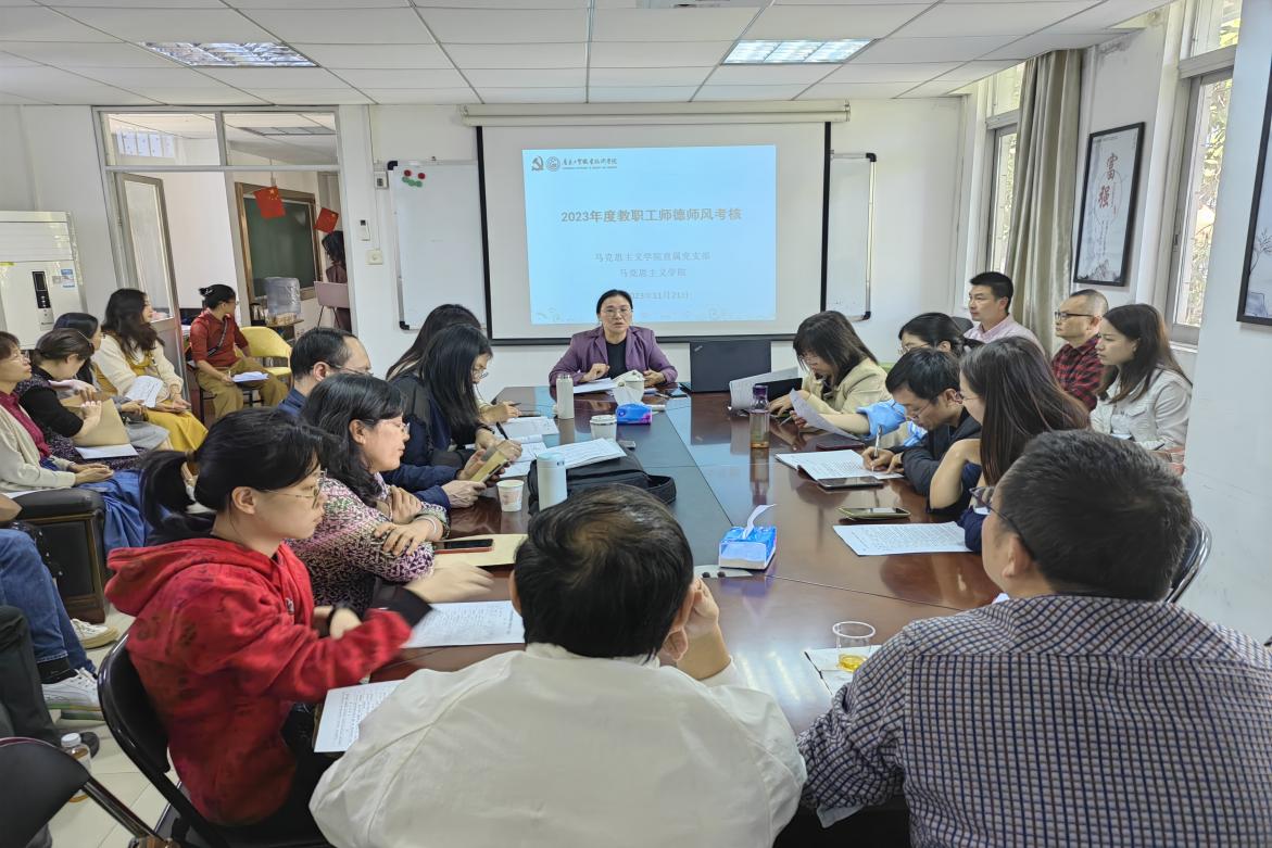 2023年11月21日下午,马克思主义学院召开2023年度教职工师德师风考核评价会议,会议由马院临时负责人宁晓菊主持,全体教师参会。