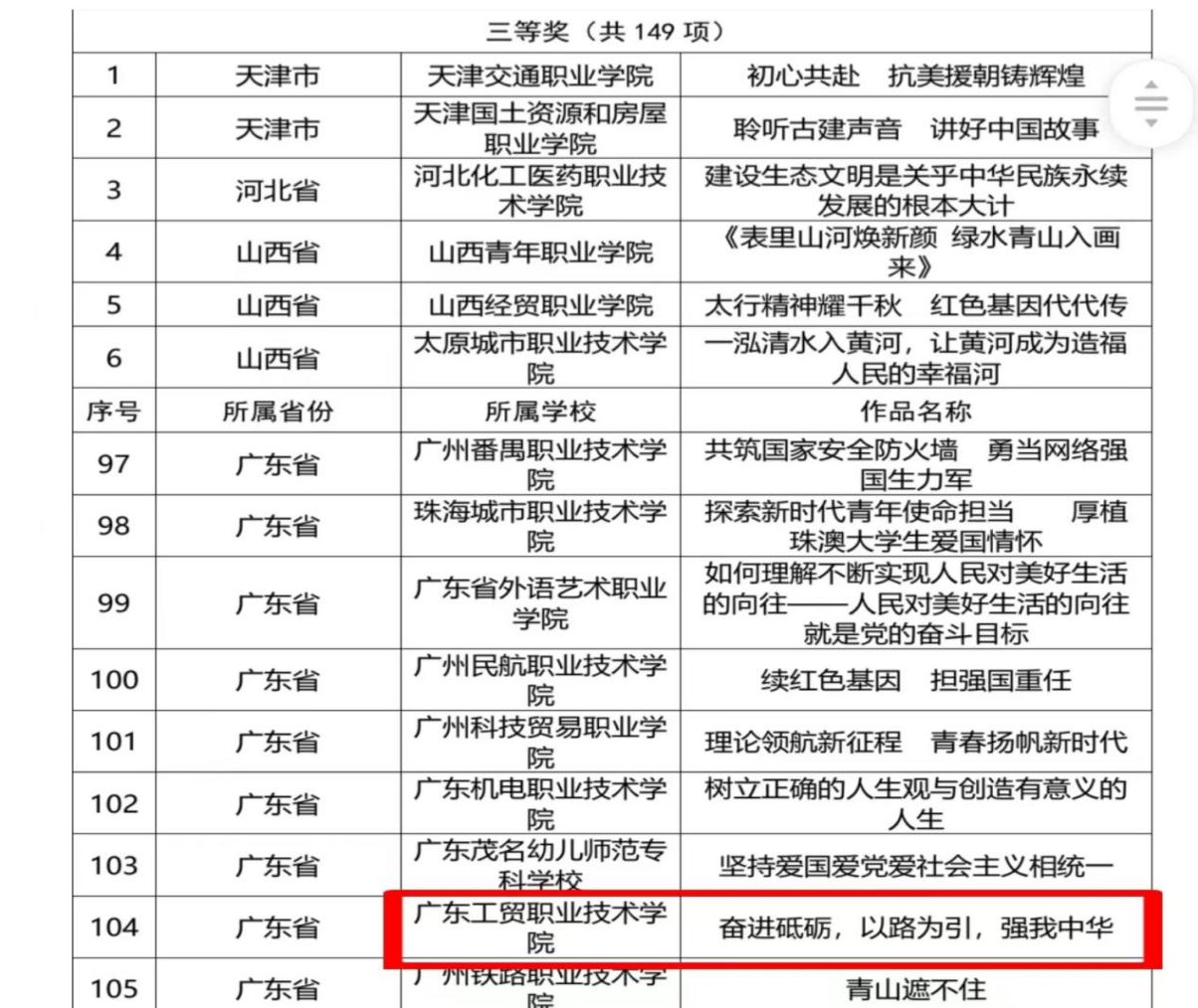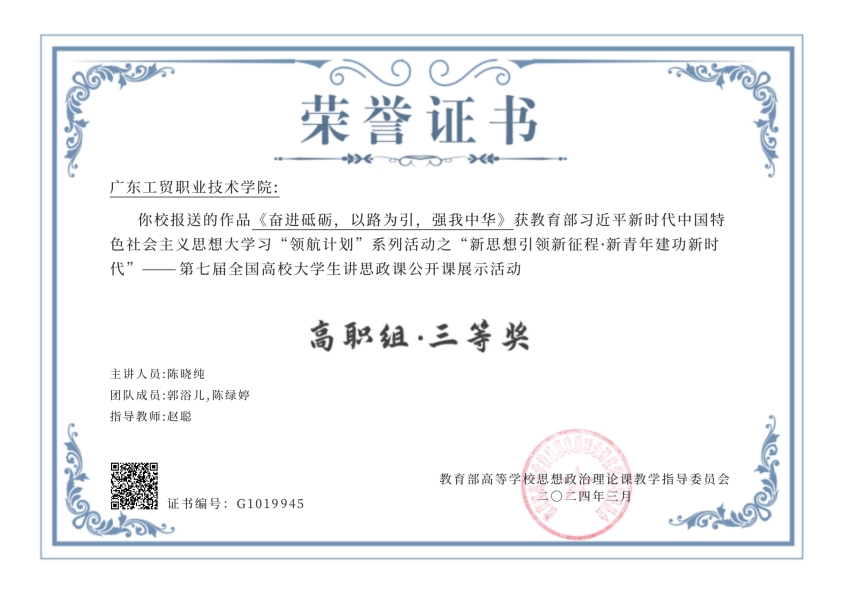 近日,由教育部社会科学司指导、教育部高校思政课教学指导委员会主办的“新思想引领新征程·新青年建功新时代”第七届全国大学生讲思政课公开课展示活动获奖名单公布。新葡的京官网学生参赛作品《奋进砥砺·以路为引·强我中华》在全国评选中脱颖而出,荣获全国高职组三等奖。