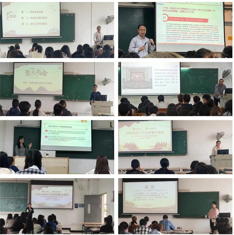 3月4日—11日,全国两会即第十四届全国人民代表大会第二次会议和中国人民政治协商会议第十四届全国委员会第二次会议在北京召开。两会召开期间,马克思主义学院就要求老师及时了解两会动态,认真学习两会精神,做好两会精神的宣讲准备工作。两会结束后,学院组织老师们开展了两会精神的集体备课,在领会两会精神的基础上,确定了授课提纲和内容,并制作了授课课件和讲稿。从3月18日开始,马克思主义学院形势与政策课老师在课堂上对全国两会精神进行了专题宣讲,重点宣讲了2024年政府工作报告以及习近平在两会期间的重要讲话精神。