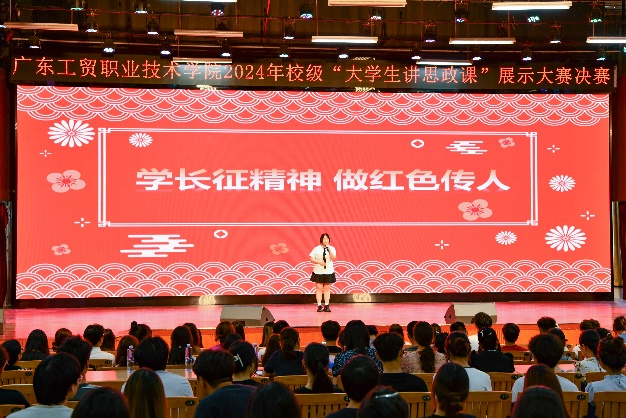 本次“大学生讲思政课”展示大赛以“新思想领航伟大征程 新青年逐梦生动实践”为主题,从今年开学初即启动,历时近四个月,从初赛、复赛,再到校级现场决赛。学生组建团队完成搜集资料、运用新媒体新技术拍摄制作视频等工作,通过现场讲课、演讲和视频展示等方式,以学生的独特视角、艺术手法,用青春热情、智慧才华呈现了一段段生动活泼、激情迸发的思政课。参赛各团队以真挚的情感、生动的案例、深入的分析为现场师生带来一场思想的盛宴和精神的洗礼。