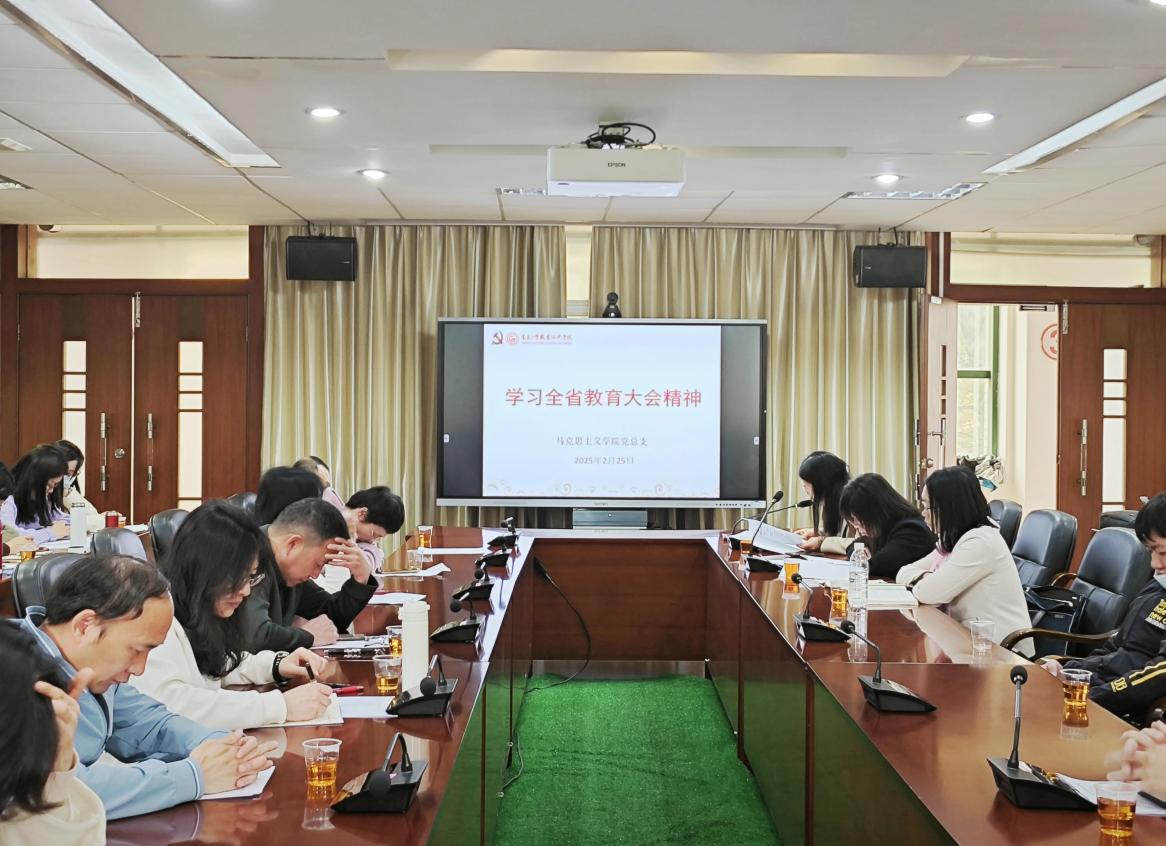 随后,会议聚焦于全省教育大会精神的传达与学习。2月24日上午,全省教育大会在广州召开,大会主题鲜明地提出了《扎实推进教育强省建设 以教育现代化支撑广东在推进中国式现代化建设中走在前列》的宏伟蓝图。张巧平在会上强调,马克思主义学院将坚定不移地践行立德树人这一根本任务,充分发挥基层党组织的育人功能,紧密围绕思政课“培根铸魂、启智润心”的教学目标,以党的创新理论和实践精神为引领,不断促进学生的全面发展。会上,教师代表魏银立和文菲斐也分享了各自的学习感想。魏银立老师结合全国教育大会精神及学校教育建设的相关文件,深刻阐述了教育的重要性,并提出要充分挖掘和利用现有红色资源,将其巧妙融入课程设计之中,实现大格局与小切口的有机结合。同时,他还展望了利用生成式人工智能等数字技术为红色文化赋能的美好前景,为思政课的教学创新提供了新思路。文菲斐老师则分享了作为思政课教师的实践与思考,她表示将社会主义核心价值观、道德模范、工匠事迹等融入教学之中,引导学生坚定理想信念。同时,充分利用学校大思政育人基地,设计沉浸式研学活动,将基地资源转化为实践教学的新动力,让学生在志愿服务、技能实训中锤炼职业素养,提升实践能力。