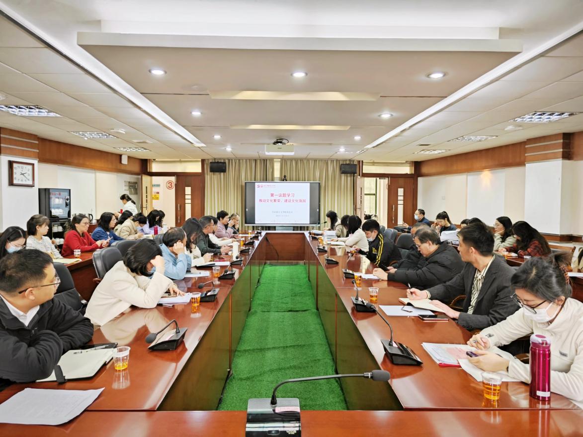 首先进行第一议题学习,张巧平领学了习近平总书记关于推动文化繁荣、建设文化强国的系列重要论述。自党的十八大以来,习近平总书记始终将推动文化繁荣、建设文化强国置于国家战略的高度,发表了一系列重要讲话,作出了一系列重要指示批示,为新时代背景下的文化使命指明了清晰的方向,提供了坚实的理论基础。通过学习深化了全体教师对文化强国战略的理解与认同,增强了责任感和使命感。