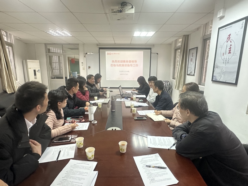 为了全面落实教育部关于开展《2024-2025 学年高校思政课课堂教学提升行动》的通知要求和《普通高校思政课教师队伍建设规划(2025-2027年)》文件精神,更好地推进新葡的京官网思想政治理论课建设内涵式发展,3月6日下午,学校教务部负责人何军拥到访马克思主义学院,与马院班子成员、各教研室主任和教师代表举行座谈,共商进一步加强和改进新葡的京官网思想政治理论课建设的具体思路、方案和举措。