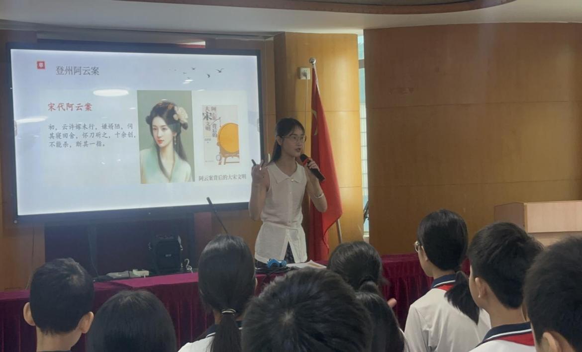 结合小学五、六年级学生的年龄特点和认知水平,赵芳老师以亲切幽默的语言开启了普法之旅。本次课堂以北宋时期著名的“阿云案”为切入点,通过生动有趣的方式,向学生们传递了法律知识,培养了他们的法治观念。