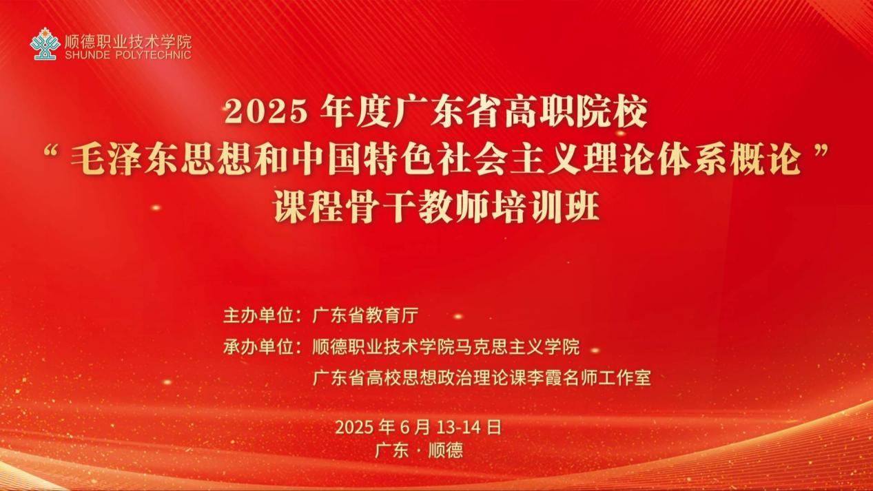 为落实立德树人根本任务,加快推进新葡的京官网思政课高质量发展,根据《广东省教育厅办公室关于举办2025年度高校思想政治理论课骨干教师培训班的通知》文件精神,马克思主义学院教师毛玲、张锦琳参加由顺德职业技术大学承办的2025年度广东省高职院校“毛泽东思想和中国特色社会主义理论体系概论”课程骨干教师培训班。