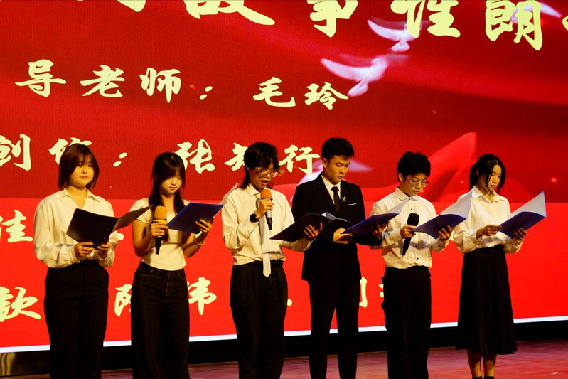 为庆祝抗战胜利80周年,本次活动同时展演了与抗战主题相关的作品。毛玲老师指导的《论〈持久战〉的哲学智慧与当代价值》等作品深情回顾了革命先烈的英勇事迹,激发了现场观众的爱国情怀。
