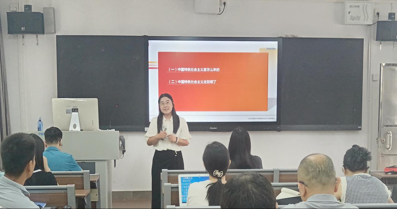 最后,会议还部署了学院2025年广东省大中小学思政课一体化教学展示交流活动的选拔工作。经前期筹备,学院确定陈梦瑶老师、武晓翠老师参与试讲。其中,陈梦瑶老师以“从算盘到无人机:一位财务总监的‘新质’奋斗观”为主题,将个人成长与时代发展相结合,阐释“追求远大理想 坚定崇高信念”的深刻内涵;武晓翠老师则以“新时代坚持和发展中国特色社会主义”为主题,梳理理论发展脉络,引导学生感悟制度优势。