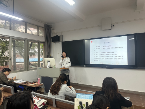 随后,刘凤梅院长带领全体教师学习了《中国共产党思想政治工作条例》《教育部办公厅等七部门关于开展全国高校“立报国强国大志向 做挺膺担当奋斗者”宣传教育的通知》以及《关于在新时代新征程高校思政课建设中进一步发挥共青团作用的实施意见》等文件,强调要深刻领会文件精神,不断提高政治判断力、政治领悟力、政治执行力,为探索构建党团联动、协同育人的思政工作新格局提供了明确指引。