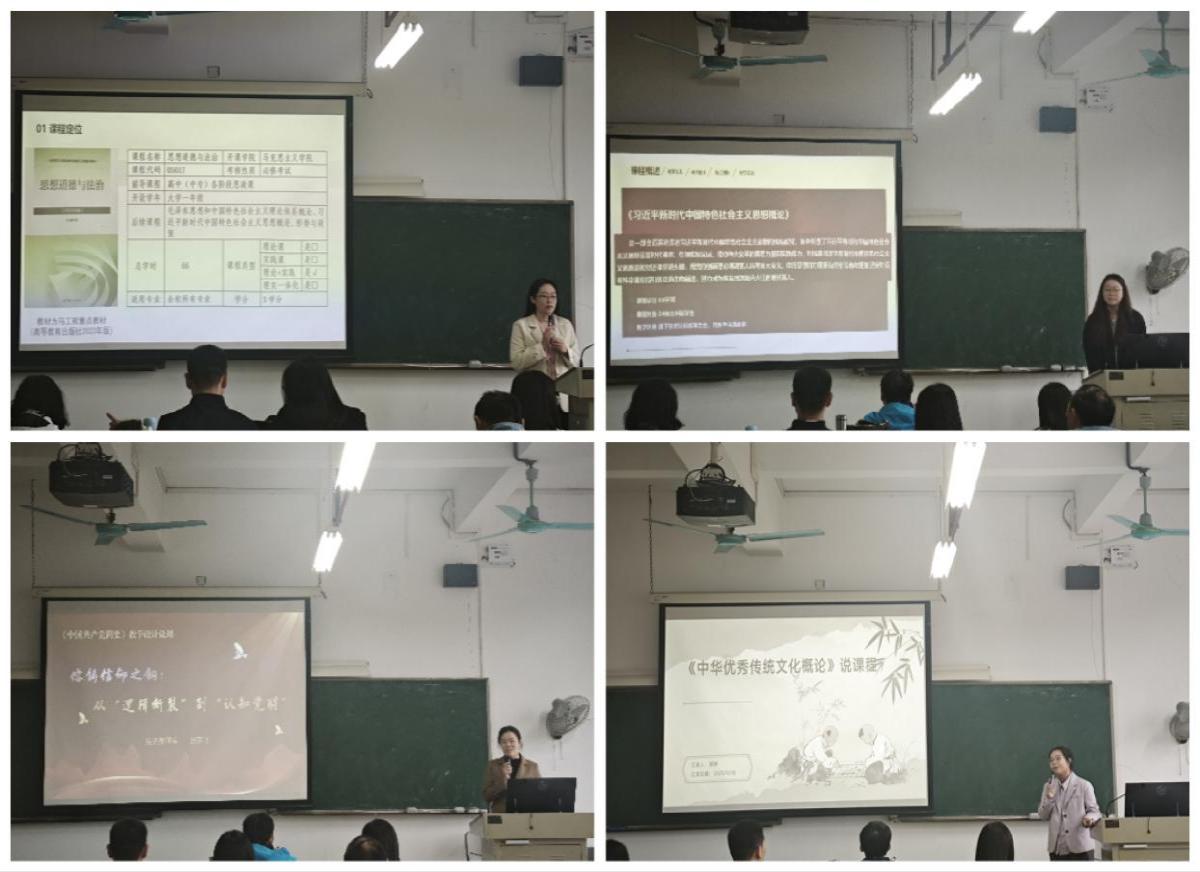 比赛现场气氛热烈,七名青年教师依次登台展示。各参赛教师以《思想道德与法治》《形势与政策》《毛泽东思想和中国特色社会主义理论体系概论》《习近平新时代中国特色社会主义思想概论》等课程为依托,紧扣思政课立德树人核心使命,结合所授课程特点,从课程内涵解读、教学目标设定、教学内容重构、教学方法创新、实践路径设计等方面展开详细阐述。