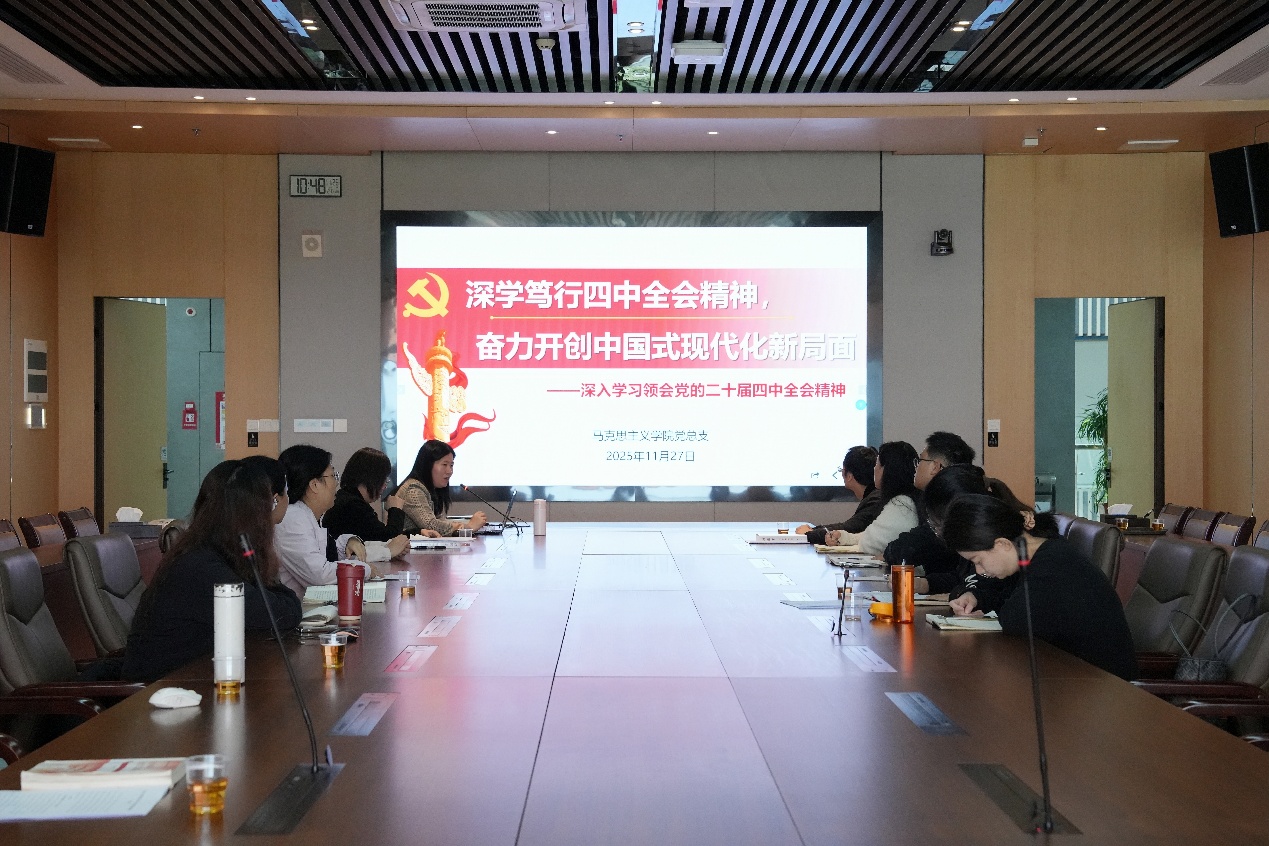 11月27日下午,马克思主义学院在白云校区博学楼会议室举行专题学习会,集中学习党的二十届四中全会精神,并围绕学院“十五五”期间发展规划开展深入研讨。学院党总支书记张巧平主持会议,院长刘凤梅、副院长贾云飞及各党支部委员参会,共同凝聚思想共识、谋划发展蓝图。