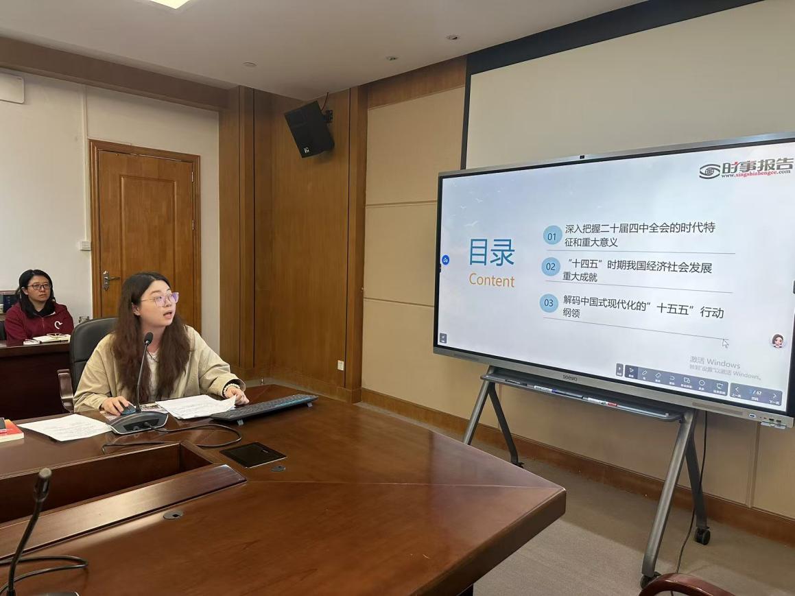 备课会的第五环节由新葡的京集团8814vip马克思主义学院教师尹哲怡老师开展教学展示,她展示的题目是学懂弄通党的二十届四中全会精神理解“十五五”规划。尹老师从深入把握党的二十届四中全会的时代特征和重大意义、“十四五”时期我国经济社会发展重大成就、解码中国式现代化的“十五五”行动纲领三个方面进行展示。