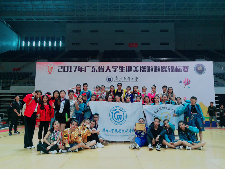我院拉拉队在2017年广东省大学生健美操啦啦操锦标赛荣获团体的总冠军!恭喜广东工贸NEW STAR院啦啦队在本次省赛中荣获: