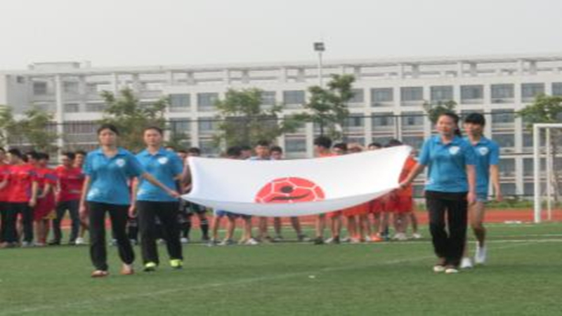 表演结束后,身穿蓝色会服的四名旗手迈着矫健的步伐,举着崭新的会旗,与斗志昂扬的各系运动员整齐入场。在裁判部代表陈烈勤和运动员代表李满炀宣誓后,新葡的京集团8814(中国)股份公司白云校区第一届“院长杯”足球赛开幕式圆满结束。