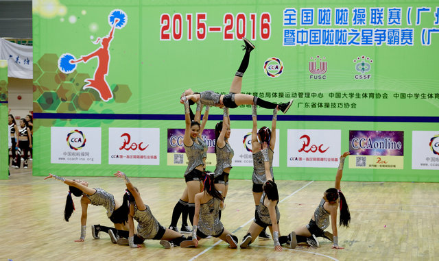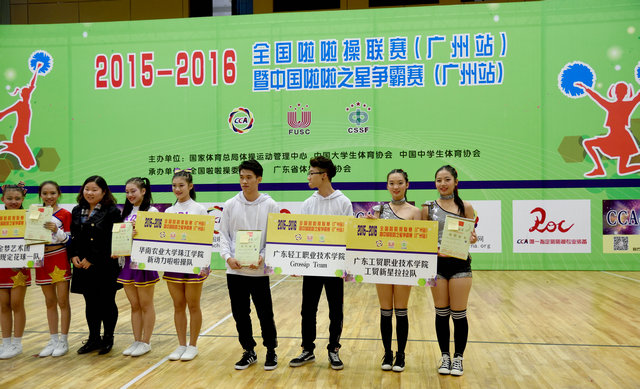 “2015—2016全国啦啦操联赛(广州站)暨啦啦队之星争霸赛(广州站)”于2015年11月27日-29日在广州体育职业技术学院隆重举行。本次比赛规模庞大,吸引了来自全省各大中专院校、中小学及各俱乐部等近九十支代表队参加。我院新星啦啦队由领队吴云、教练员李俊浩、谢娜带领参加本次比赛。在此次比赛中,工贸新星啦啦队荣获了大学甲组集体自选动作花球啦啦操第一名和大学甲组集体自选动作爵士啦啦操第一名,勇夺双冠。同时,谢娜和李俊浩老师也获得了优秀教练员称号。 啦啦队队员活力四射,把最佳的身姿形态、精神风貌展现在评委和观众面前,发扬了工贸学子努力拼搏、奋发向上的精神。她们此次勇夺双冠,再一次突破了自我。啦啦队队员们在比赛中为学校争得荣誉的同时,也积累了比赛经验。希望她们再接再厉,谦虚学习,努力训练,争取在更大的舞台上展现自己,创造更大的辉煌!