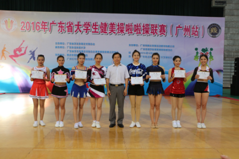 2016年广东省大学生健美操啦啦操联赛(广州站)于6月26日在广东外语外贸大学大学城校区隆重举行,本次大赛由广东省学生体育艺术联合会主办,各大高校队伍庞大,竞争激烈,我院运动员们由领队吴云,教练员谢娜老师,李俊浩老师等参加本次比赛,运动员们发挥最佳的状态,在赛上取得好成绩,荣获8个奖项,取得大学生丙组团体总分荣获丙组第二名。分别为:自选花球啦啦操第一名,啦啦操自选动作第三名,轻器械健身操自选动作第二名,全国全民健身操等级推广规定动作有氧舞蹈5级第三名,徒手健美操自选动作第六名,另外,我院啦啦爵士队也参加本次大赛并荣获奖项,分别为街舞自选动作套路大集体第四名,街舞自选套路小集体第三名和第四名,这是属于工贸的荣誉!