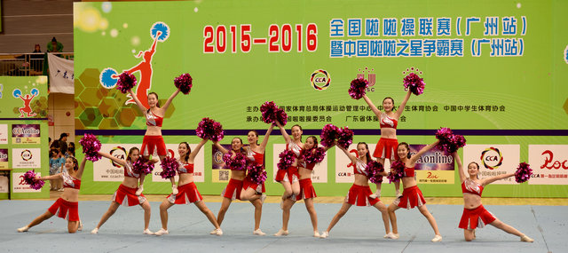 “2015—2016全国啦啦操联赛(广州站)暨啦啦队之星争霸赛(广州站)”于2015年11月27日-29日在广州体育职业技术学院隆重举行。本次比赛规模庞大,吸引了来自全省各大中专院校、中小学及各俱乐部等近九十支代表队参加。我院新星啦啦队由领队吴云、教练员李俊浩、谢娜带领参加本次比赛。在此次比赛中,工贸新星啦啦队荣获了大学甲组集体自选动作花球啦啦操第一名和大学甲组集体自选动作爵士啦啦操第一名,勇夺双冠。同时,谢娜和李俊浩老师也获得了优秀教练员称号。 啦啦队队员活力四射,把最佳的身姿形态、精神风貌展现在评委和观众面前,发扬了工贸学子努力拼搏、奋发向上的精神。她们此次勇夺双冠,再一次突破了自我。啦啦队队员们在比赛中为学校争得荣誉的同时,也积累了比赛经验。希望她们再接再厉,谦虚学习,努力训练,争取在更大的舞台上展现自己,创造更大的辉煌!