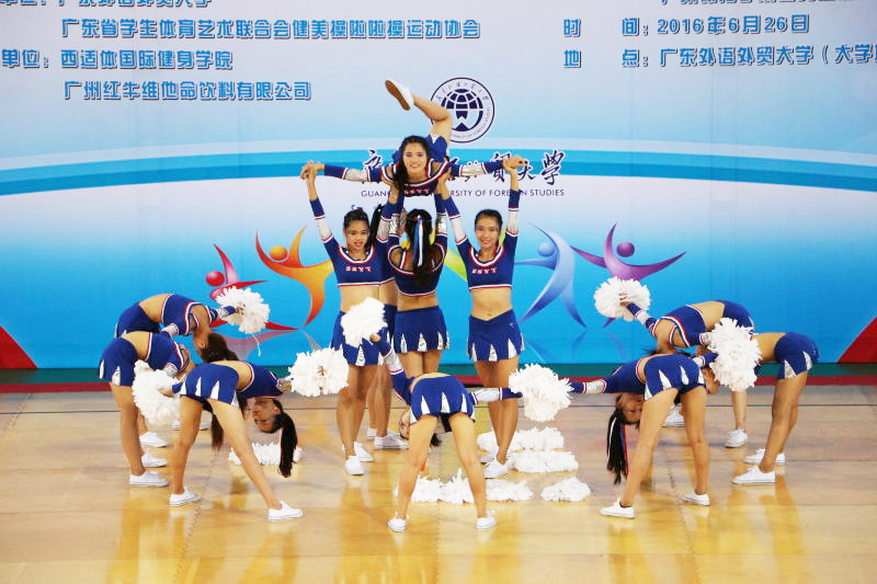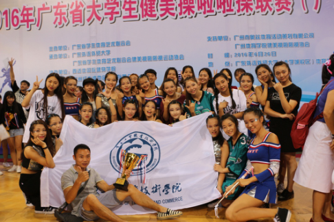 2016年广东省大学生健美操啦啦操联赛(广州站)于6月26日在广东外语外贸大学大学城校区隆重举行,本次大赛由广东省学生体育艺术联合会主办,各大高校队伍庞大,竞争激烈,我院运动员们由领队吴云,教练员谢娜老师,李俊浩老师等参加本次比赛,运动员们发挥最佳的状态,在赛上取得好成绩,荣获8个奖项,取得大学生丙组团体总分荣获丙组第二名。分别为:自选花球啦啦操第一名,啦啦操自选动作第三名,轻器械健身操自选动作第二名,全国全民健身操等级推广规定动作有氧舞蹈5级第三名,徒手健美操自选动作第六名,另外,我院啦啦爵士队也参加本次大赛并荣获奖项,分别为街舞自选动作套路大集体第四名,街舞自选套路小集体第三名和第四名,这是属于工贸的荣誉!
