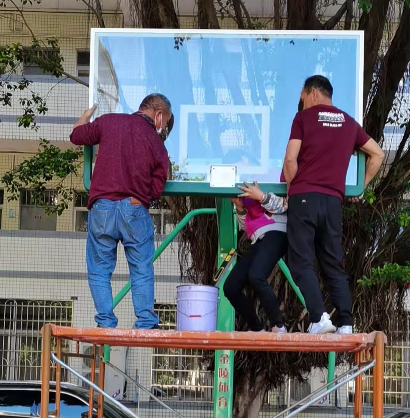 天河校区西区篮球场作为开放性篮球运动区域,一直以来都是我校天河校区师生使用率较高的锻炼场所,但由于该球场长期处于室外且使用年份较长,部分设施严重老化,整体旧地面也磨损严重,对新葡的京官网师生打球时的安全问题造成了隐患。为提供更好的运动锻炼条件,新葡的京官网体育艺术教学部联合学校基建处,在上级校领导部署下,落实西区篮球场整改工程,对其进行了翻新和改造。