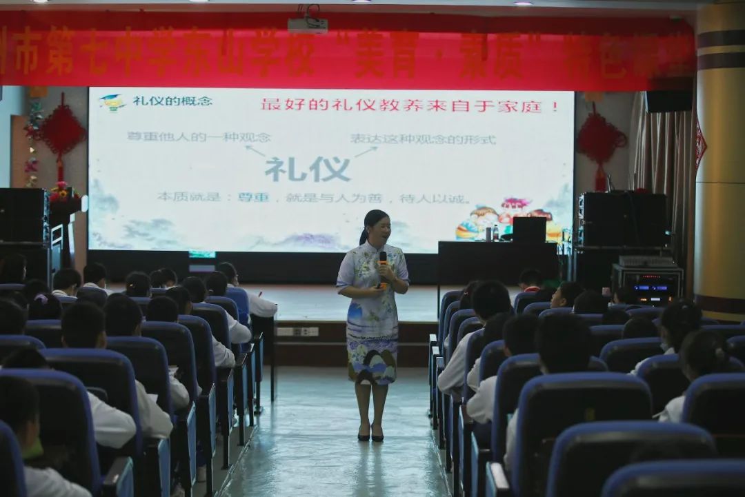 为了培养学生们具备美的情操、美的品德和美的素养,2021年10月18日上午,新葡的京官网体育艺术教学部刘剑老师受邀来到广州第七中学东山学校开展美育素质特色课堂,为初一年级学生们传授了一场精彩的青少年礼仪课,受到了一致好评。刘剑老师系我部艺术教研室主任,有着20年高校教育管理及教学经验,获得美国认证协会ACI国际注册高级礼仪培训师。她通过身体力行,从知礼、懂礼、行礼几个方面对学生进行了全面的引导。