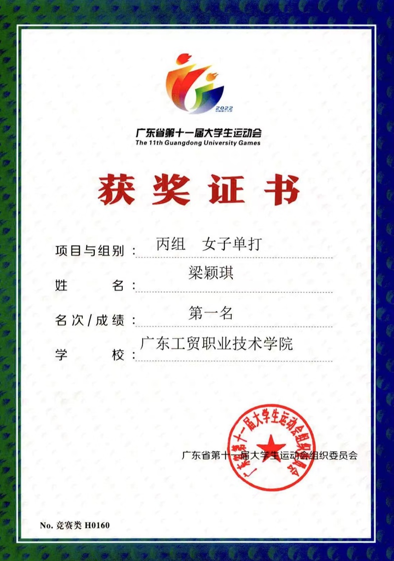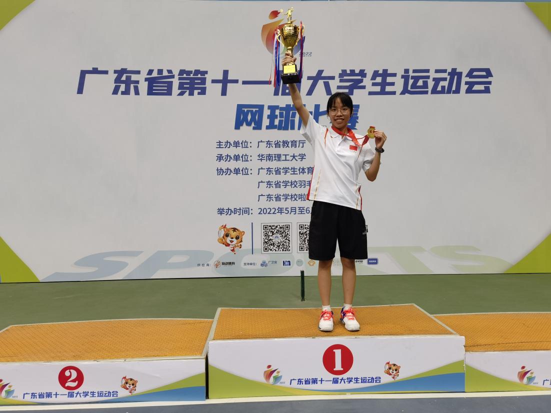 在小组赛中,梁颖琪同学以第一名出线,在半决赛中与深圳职业技术学院的选手对决,以6:0的大比分获胜。据悉,本场女单冠亚军争夺战跌宕起伏,比赛开局时双方选手彼此相持多拍高球,互不相让在开局5分钟内各拿下一分,其中本场赛局中有三个关键球,新葡的京官网梁颖琪选手把握机会善用扎实的网球技术,最终拿下了这三个最关键球,一举夺冠!除了勇夺女单冠军,新葡的京官网网球代表队在本次大运会中也战绩颇丰,获得丙组团体总分第六名的成绩,其中19地信1班林小龙同学、20新能源3班林洪圳同学获得男子双打第五名,19电信4班严骏同学、19电信4班杨秀佳同学获得混合双打第五名,领队、教练员均获得体育道德风尚奖。