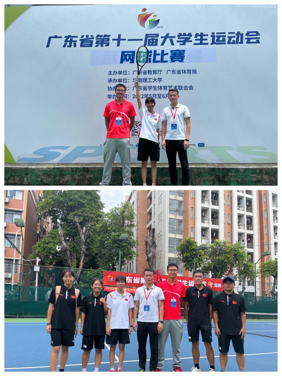 此次广东省大运会是全面贯彻落实党的教育方针的重要举措,由省教育厅、体育局主办,华南理工大学承办,参赛规模、人数再创历史新高。其中网球项目于5月26日正式拉开帷幕,为期5天,来自16个代表队同场竞技,一决高下。新葡的京官网网球代表队由体艺部余铨业主任担任领队,刘羽老师、刘楚泽老师担任教练,共有7名学生出征参加比赛。