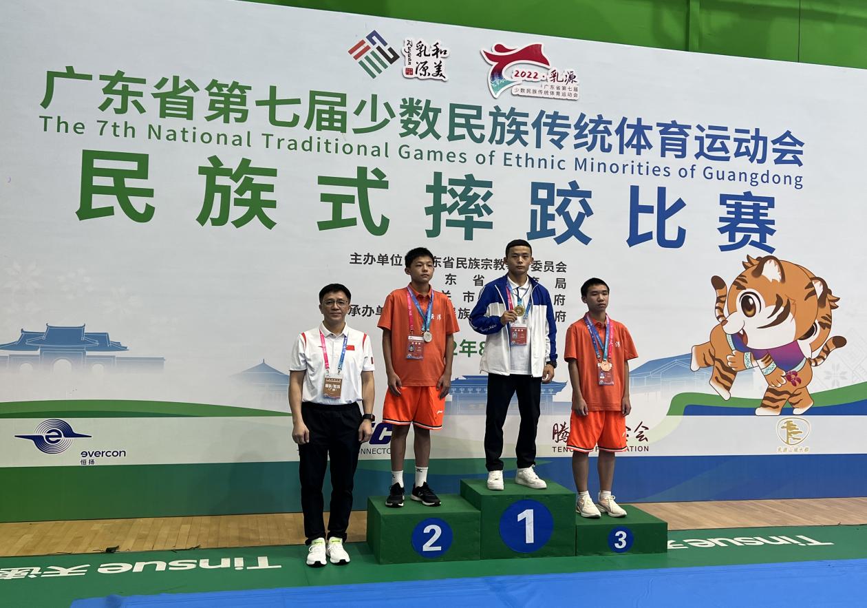另一项民族摔跤运动共设四个项目(16枚金牌),我代表队参加了10个级别的赛事,发挥出色,共获得了4个一等奖、2个二等奖、4个三等奖的成绩。另外,表演项目也是本次少数民族传统体育运动会的一大特色,由刘剑老师指导学生参加的技巧类表演项目《岭瑶欢歌意情长》得到了评委们的一致好评,获得了二等奖的好成绩。