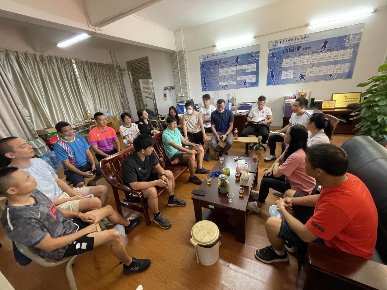 艺术教研室主任刘剑老师、球类教研室主任林鹏杰老师分别就所在教研室作上学期教学及相关工作总结并提出新学期要求。办公室主任刘羽老师及余铨业主任分别从教学、比赛、内审、科研团队建设、学生体质测试、疫情防控、器材管理、学生上课安全等方面进行总结,提出存在不足及解决办法,并提出新学期工作计划,提醒新学期上课场地分配、器材上报、教案、授课计划表等材料按时提交归档、调停课流程等问题,并重点强调相关教学规范及师德准则。