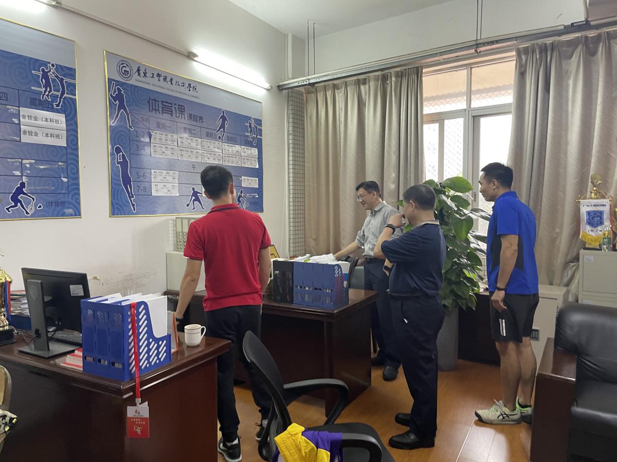 2022年11月16日下午,学校副校长刘贻新、科研处处长何军拥到体艺部东区办公室对科研团队办公场地进行实地考察,我部余铨业主任、刘羽老师陪同参加了考察和座谈。