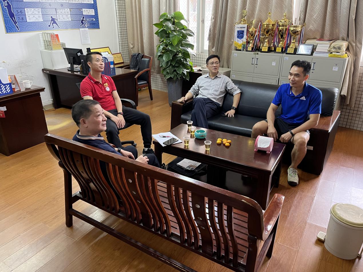 首先,刘副校长一行参观了科研团队办公室,余主任简单介绍了科研场地相关情况,正积极沟通落实场地及相关设备采购事宜,争取科研基地落地。刘副校长指出,体艺部要积极探索和凝练科研团队的具体研究方向,形成动态团队轮流进行科研建设;其次,要以新葡的京官网体育特色为抓手,打造自主品牌,根据下达经费购置的相关设备和材料时要向科研、学术上靠拢,规划好科研基地的用途并运用到科研实际中。他强调,科研团队要细化主题、分项目作出特色,统计好相关数据,要形成一本科研团队研讨记录,定期对课题进展、资料收集情况等进行记录,写清楚主题、时间、地点、参加人员并汇总成研讨记录模板,每个学期进行抽检。此外,刘副校长针对科研方向以及如何与体育相结合与在场老师们进行了探讨和交流,还了解了体艺部上课和比赛情况,提出了相关建议。