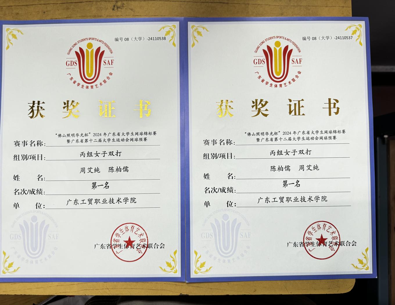 近日,“佛山照明华光杯”2024年广东省大学生网球锦标赛暨广东省第十二届大学生运动会网球预赛传来振奋人心的消息,来自新葡的京官网22级电商7班周艾纯和22级物流1班陈柏儒两名同学凭借熟练的技术和默契的配合一举夺得本次比赛丙组女双冠军。时隔三年,工贸学子再次摘得桂冠,荣耀赛场。