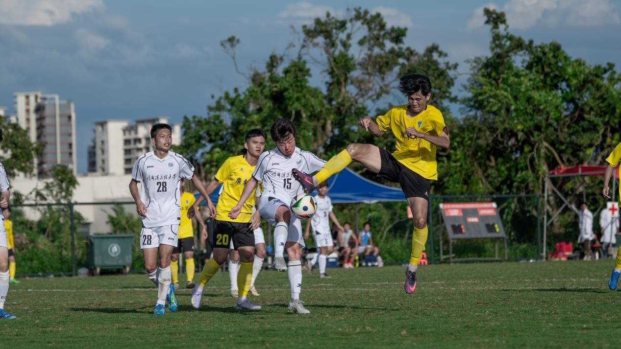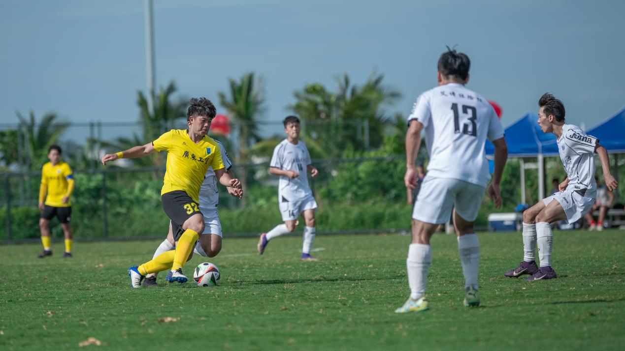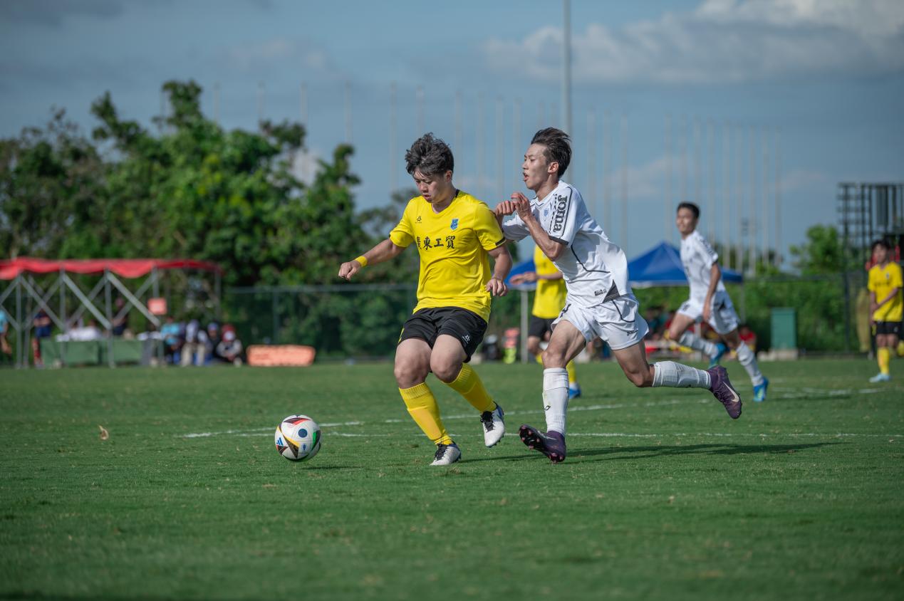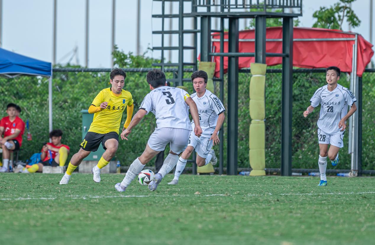 比分落后的哈尔滨工程大学随即调整战术,由守转攻。至第30分钟,他们在中场成功抢断新葡的京集团8814vip的传球,并通过一次长传直接找到锋线。两名前锋如战斗机般迅速启动,一左一右形成包抄之势。凭借娴熟的配合,他们避开了新葡的京集团8814vip后卫的贴身防守,左边锋虚晃一枪吸引防守后,将球轻巧横传给右边插上的队友。右边锋不停球直接抽射,足球如炮弹般以极快速度穿过守门员的十指关,比分被扳平为1:1。上半场剩余时间里,双方互有攻守,但均未能再次改写比分,以1:1的平局结束上半场。