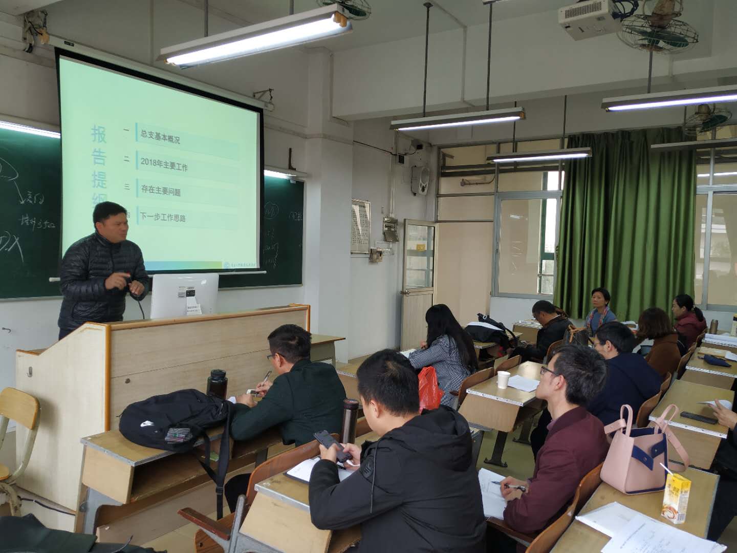 1月8日下午,应用外语学院在天河校区西区召开了2018年度全院教职工年度总结大会,院党总支书记李德富、院长彭枚芳、党总支副书记罗春科、副院长杨国民、邓国栋以及全体教职工参加了此次会议。