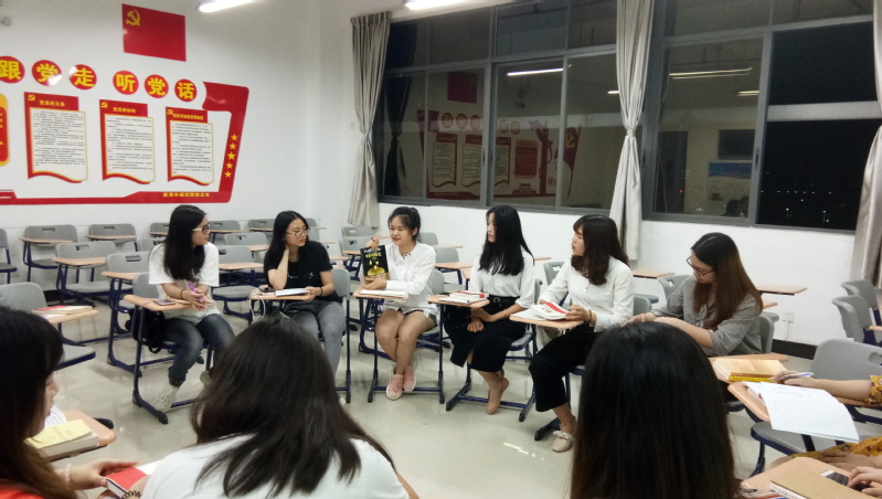 《朗读者》主诗人董卿说:“读书让人学会思考,让人能够沉静下来,享受一种灵魂深处的愉悦。”为了促进读书的进一步深化和拓展,培养广读书、读好书的浓厚学习氛围,打造“书香支部”文化,以党员为引领,使一个人读书变成一群人在读书,共享读书,分享交流。应用外语学院第二党支部本学期开展了“读书﹒漂流﹒共享”为主题的系列读书西漂流活动。在我们进行第一期漂流之后,近日,支部组织党员和积极分子在教学楼1-618课室举行了读书交流分享活动。外语学院学生第二党支部书记王燕玲老师和支部16名党员和积极分子参加了本次学习分享活动。