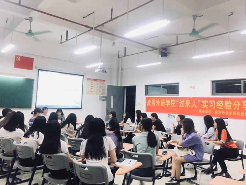 为进一步加强学生职场素质提升,充分发挥朋辈互助效果,5月14日,结合2019届毕业学子返校参加答辩的契机,应用外语学院在白云校区明德楼1区618开展“过来人”实习经验分享沙龙,邀请部分优秀毕业学子为在校的2017级和2018级同学做近距离的实习经验分享沙龙。