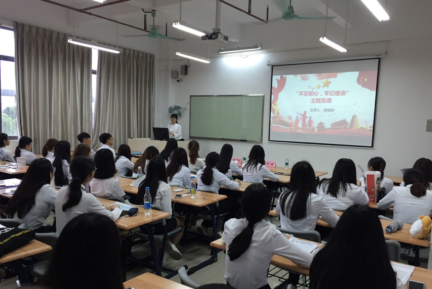 6月6日下午15点,应用外语学院学生第一党支部在教学楼1-418举办了“不忘初心、牢记使命”主题党课学习活动,本次党课由应用外语学院学生第一党支部书记陈晓玲同志讲授,支部全体党员参加了此次学习活动。