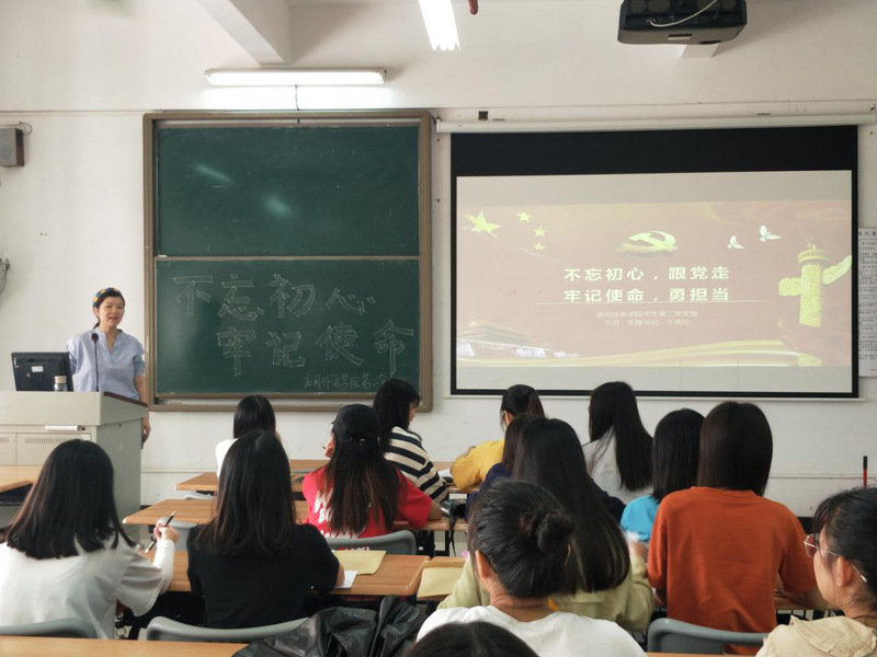 为了深入贯彻落实习近平新时代中国特色社会主义思想,深入开展“不忘初心、牢记使命”的主题教育开展,2019年10月27号,应用外语学语学生第二党支部围绕“不忘初心跟党员,牢记使命勇担当”为主题在明德楼1-310开展学习活动。支部书记王燕玲老师为支部的党员、发展对象们主讲本次党课。