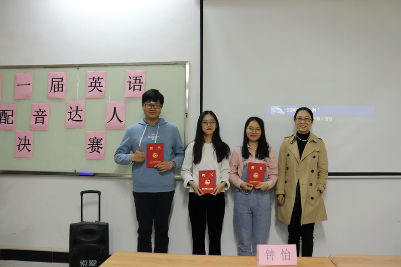 内容丰富多彩的英语配音比赛不仅可以激发学生学习英语的热情,而且能让学生在轻松愉悦的环境中提高英语语言素养。为此,12月10日下午两点,由应用外语学院团委学生会主办、学习部协办的第一届英语配音达人决赛在明德楼1区516顺利举行。商务英语专业专任老师钟怡应邀担任此次决赛评委。