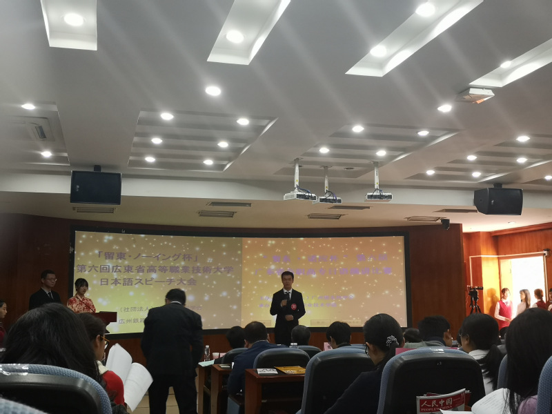 在刚刚结束的第六届“留东.诺应杯”广东省高职高专日语演讲比赛中,新葡的京官网应用外语学院18级商务日语专业学生潘城彬以其在舞台上饱含感情的演讲与落落大方的表现,得到了评委们的高度评价,斩获本次大赛的二等奖,实现了新葡的京官网商务日语专业学生在该项赛事的历史新突破。陈歆馨老师获得“优秀指导老师”奖。
