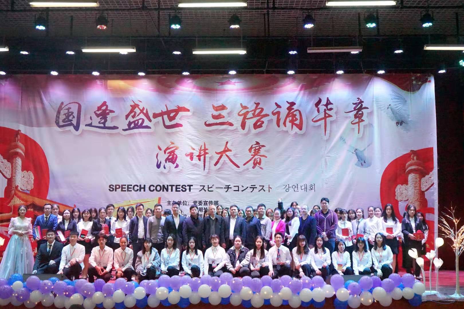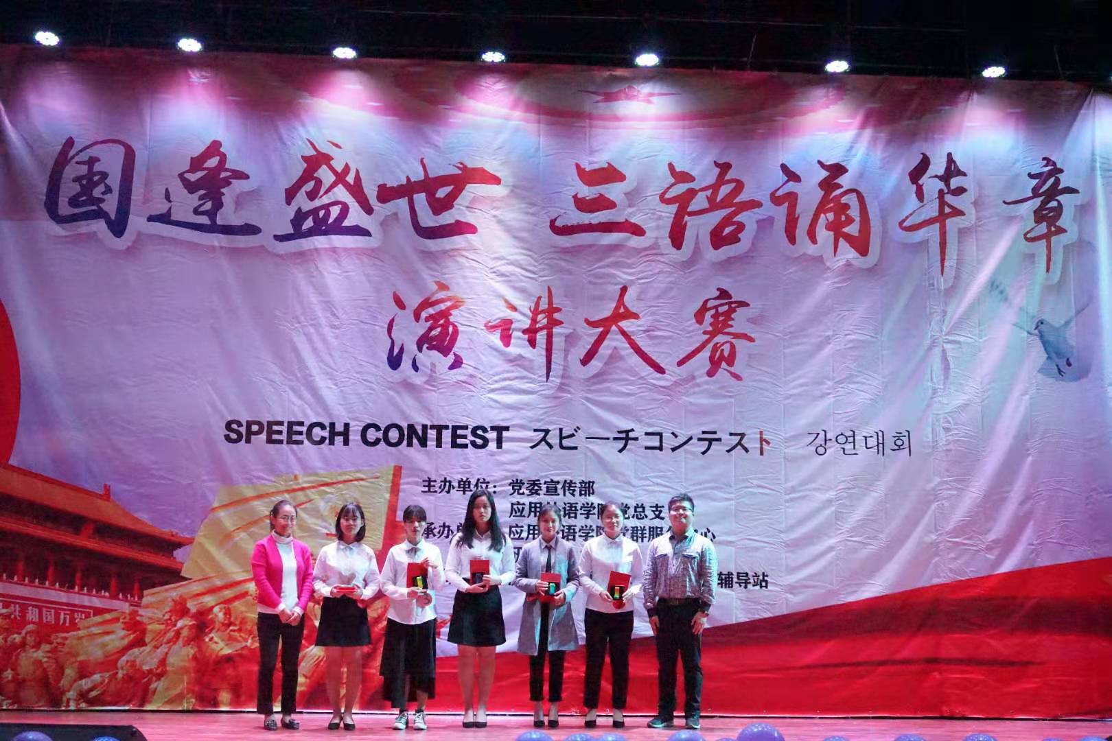为诵中华人民共和国成立七十周年,加强我院同学的爱国热情,增强民族自信心和自豪感,培养专业能力,12月26日晚,应用外语学院党群服务中心在演艺厅举办以“国逢盛世,三语诵华章”为主题的演讲大赛。校党委副书记夏韩辉、外语学院党总支书记李德富、党总支副书记罗春科、副院长杨国民、旅游英语专业带头人曾昭涛教授,及相关专业教师、辅导员参加本次大赛。11位同学来自各班的演讲好手逐一登台展现风采。
