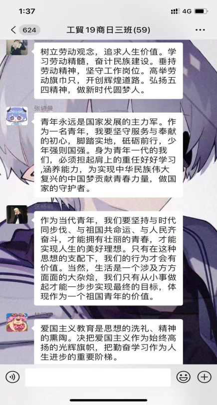 各班级团支部在团课学习中,以互动分享、体验感悟等形式引导同学们展开讨论,同学们针对学习的文章、观看的视频有感而发。把自己在疫情期间的所见、所闻、所为分享给大家,从身边的榜样中汲取力量,从日常中的小事中激发感悟,积极的互动交流,切实提高了团课开展质量。团员们纷纷表示,作为新时代青年,在疫情“大考”后更要牢记习近平总书记殷殷嘱托,不负青春韶华、勇担历史责任,以实际行动弘扬爱国主义情怀、传承五四薪火,努力成长为德智体美劳全面发展的社会主义事业合格建设者和可靠接班人。