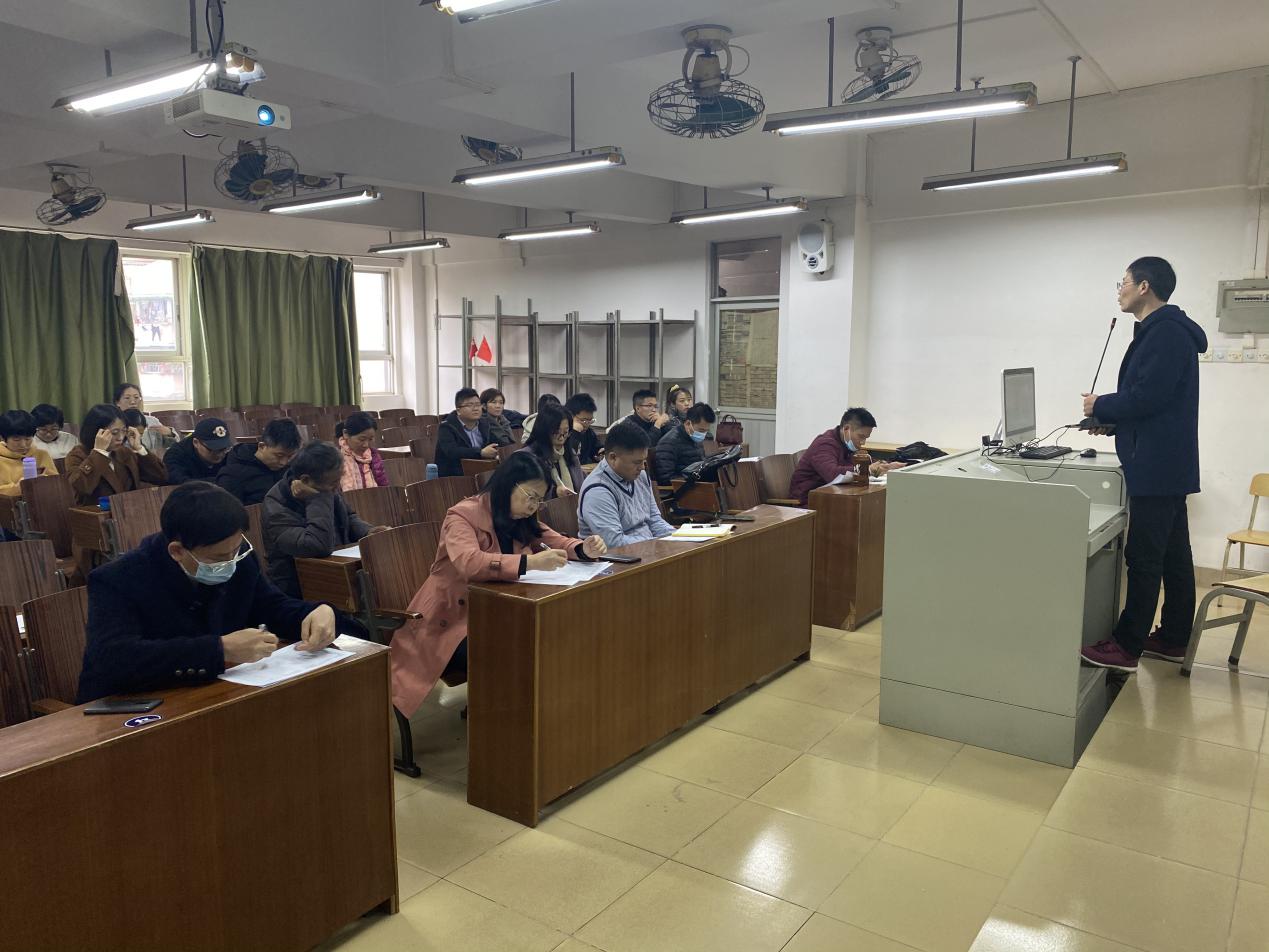 12月16日下午,应用外语学院在天河校区西区407召开全院教职工大会,学院党总支书记李德富、院长彭枚芳、党总支副书记罗春科、副院长杨国民、邓国栋以及全体教职工参加了此次会议。