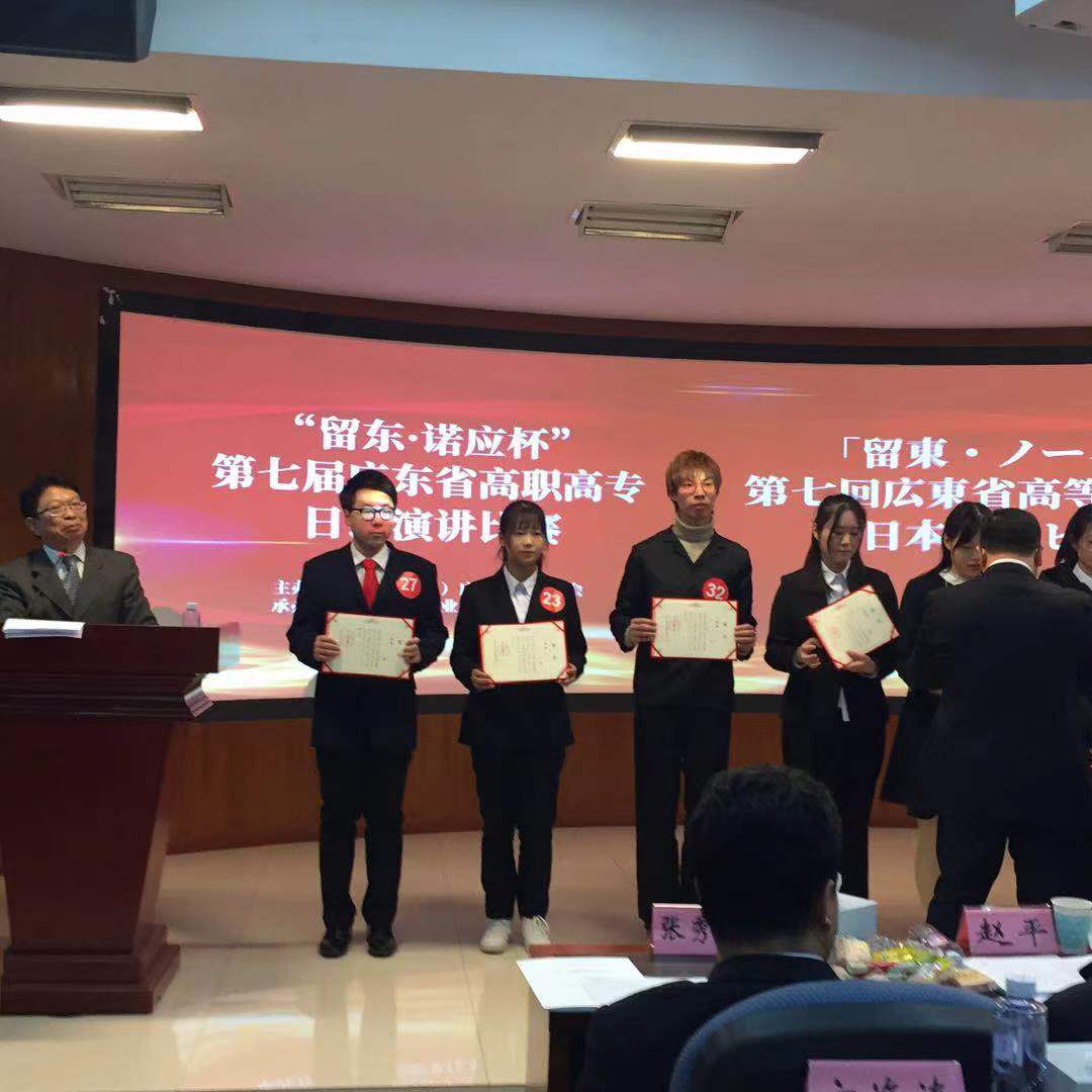 为推动高职高专日语教育教学改革,提高日语人才培养质量,激发广大学生对日语学习热情和兴趣,12月19日,由广州留东同学会主办、广州铁路职业技术学院承办、日本驻广州总领事馆协办的“留东・诺应杯”第七届广东省高职高专日语演讲比赛在广州铁路职业技术学院举行。应用外语学院2019级商务日语2班的李嘉辉同学和黄奕杰同学分别斩获二等奖和三等奖。熊岚、周丹两位老师荣获“优秀指导教师”奖。